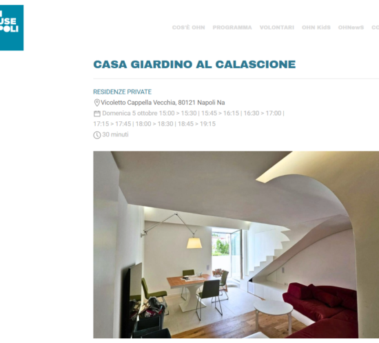 Openhouse Napoli has selected our Casa Giardino al Calascione among its private residences for public viewing on October 5th from 3:00 PM to 7:15 PM.